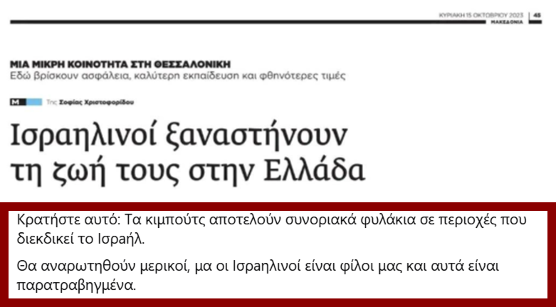 Η αντισημιτική παράνοια ξεπερνά κάθε όριο : ΠΑΡΟΥΣΙΑΖΟΥΝ ΙΣΡΑΗΛΙΝΟΥΣ ΩΣ ΕΠΙΔΟΞΟΥΣ ΚΑΤΑΚΤΗΤΕΣ ΤΗΣ ΘΕΣΣΑΛΟΝΙΚΗΣ Πόσο μακριά είμαστε από ένα νέο Κάμπελ ; Ο τίτλος του άρθρου δεν είναι clickbait. Τις τελευταίες μέρες γινόμαστε μάρτυρες μιας νέας, παρανοϊκής φάσης κλιμάκωσης της δημόσιας αντισημιτικής ρητορικής. Σε πρόσφατη ανάρτηση στελέχους του Κομμουνιστικού Κόμματος Ελλάδας, με έντονη συνδικαλιστική δράση στη Θεσσαλονίκη — αλλά και σε μια σειρά αναρτήσεων άλλων χρηστών — Ισραηλινοί πολίτες που έχουν επιλέξει να μετοικήσουν στην Επανομή Θεσσαλονίκης στοχοποιούνται ως σκοτεινοί πράκτορες που κινούνται βάσει σχεδίου, με τελικό στόχο την κατάκτηση και κατοχή…